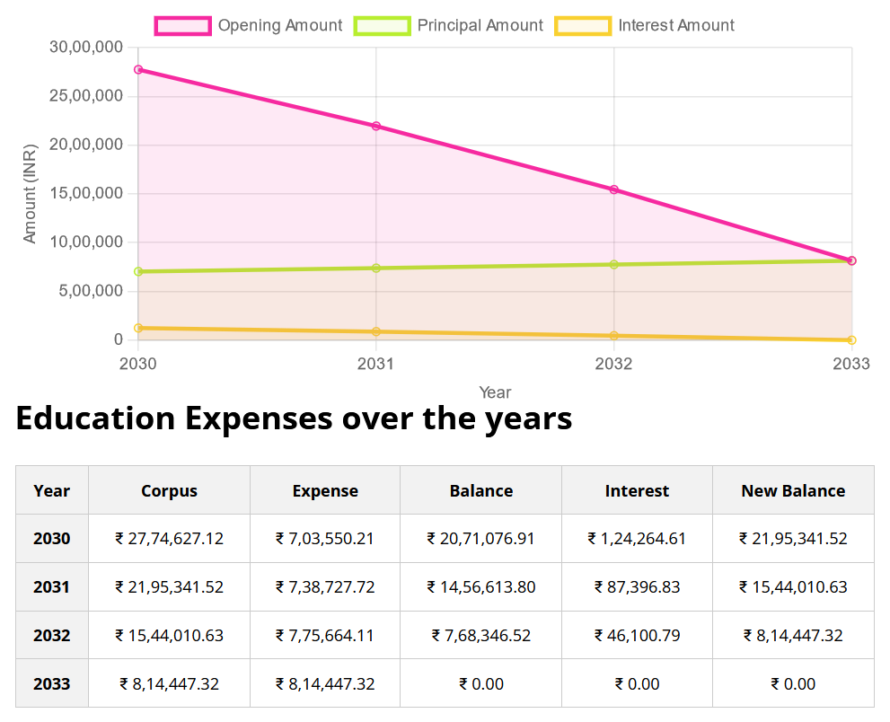 - The calculator takes the guesswork out of financial planning, providing parents with a clear roadmap to meet their child’s educational expenses. By knowing the exact amount they need to save and invest, parents can plan better and start early.