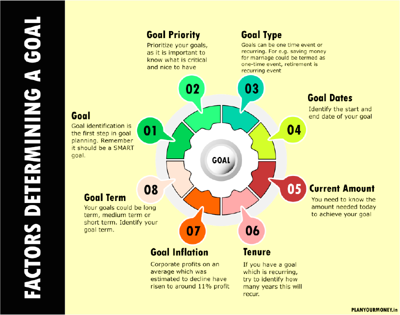 - Goal : Goal identification is the first step in goal planning. Identify all your goals and make sure you make them SMART .