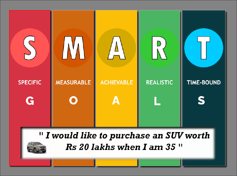 If you take the above goal, you have clearly laid out your goal that you intend to own a car costing 20 lakhs today when you become 35 and it should be a SUV. You can name the SUV later, but this is a good start !